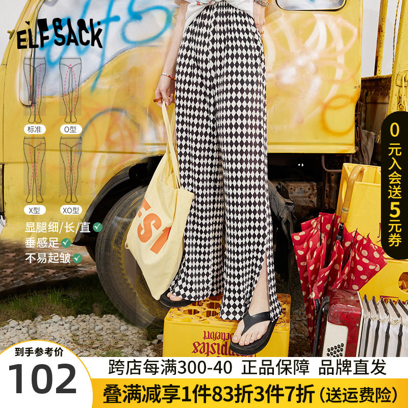 妖精的口袋棋盘格高腰喇叭裤女2024春季新款显瘦微喇裤阔腿长裤子