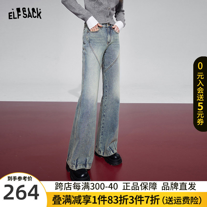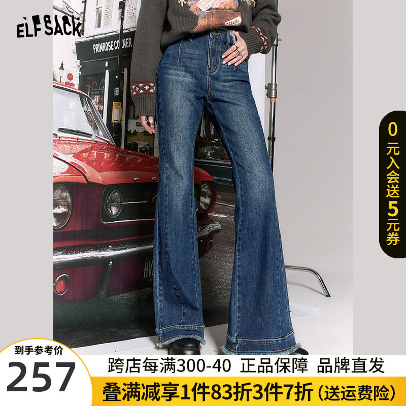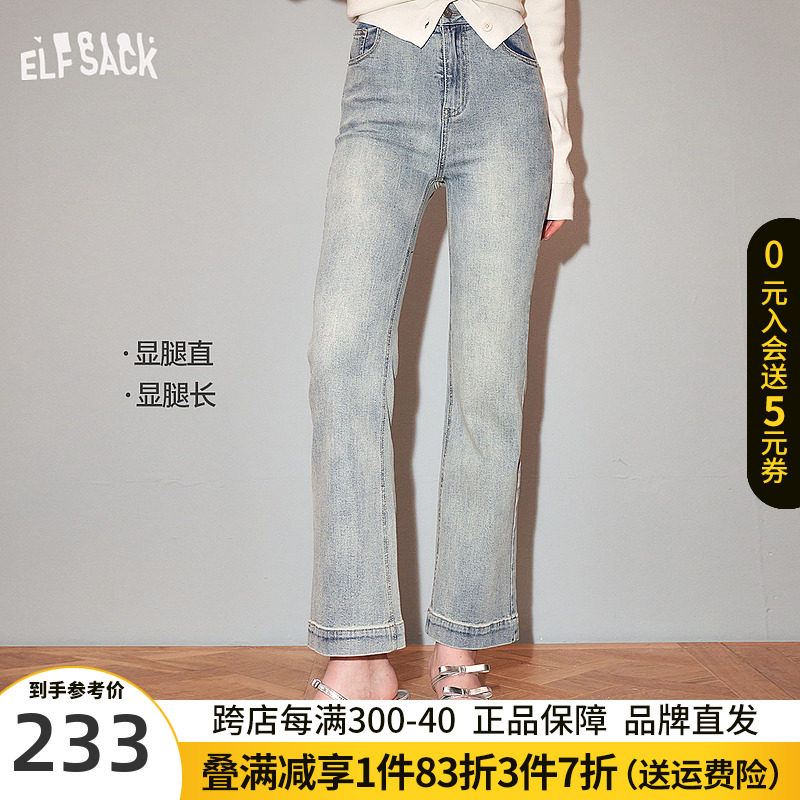 妖精的口袋高腰微喇牛仔裤女2024早春新款毛边设计感显瘦喇叭裤子
