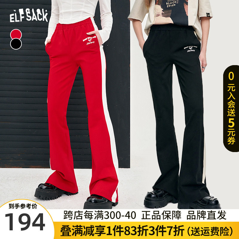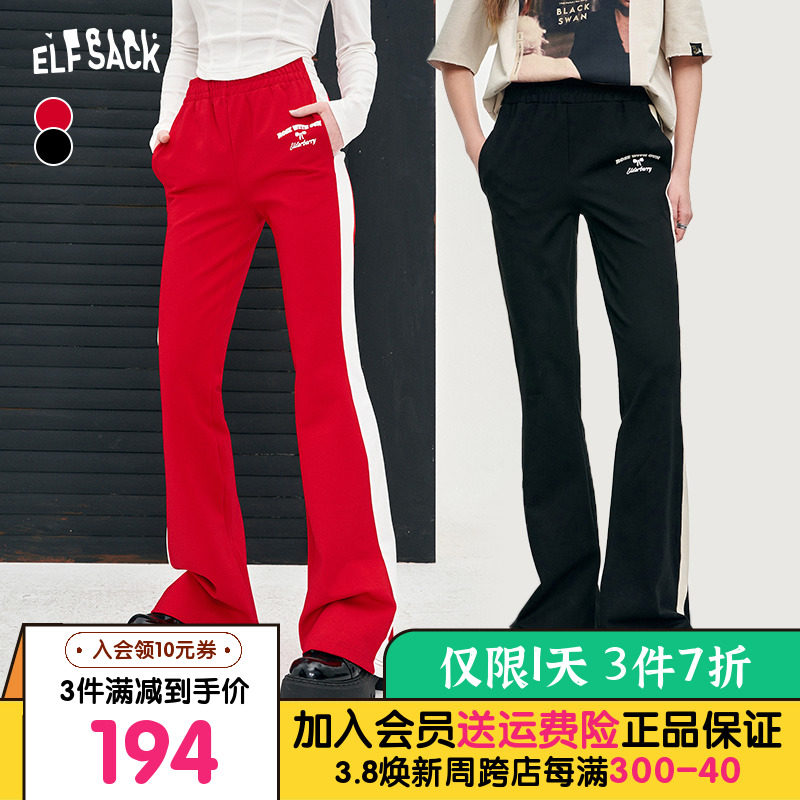 妖精的口袋撞色拼接运动裤女2024年早春新款宽松显瘦微喇休闲裤子