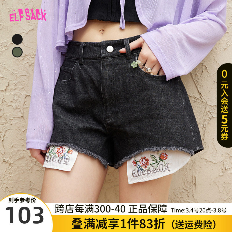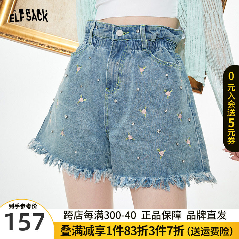 妖精的口袋刺绣牛仔短裤女2023夏季新款小众设计感高腰a字热裤子
