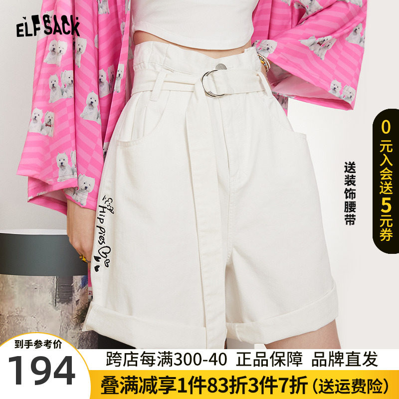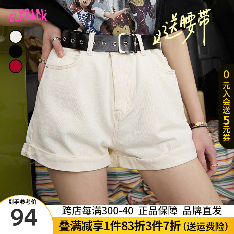送腰带妖精的口袋白色牛仔短裤女2023夏季新款高腰显瘦直筒裤子潮