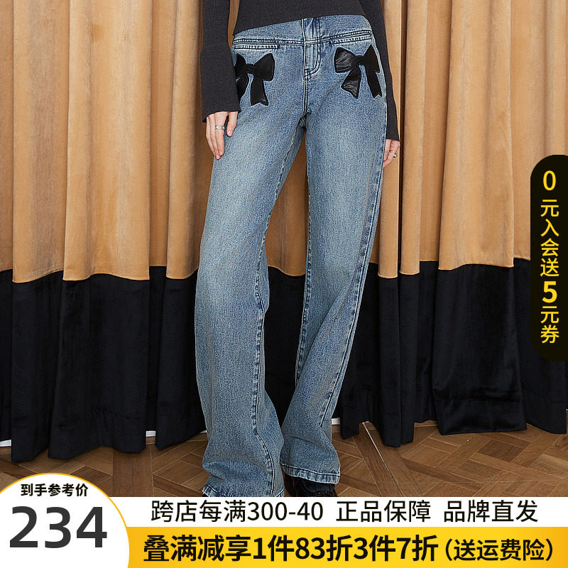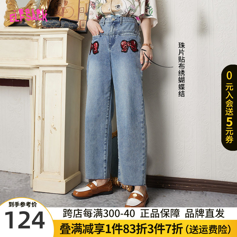 妖精的口袋蝴蝶结直筒牛仔裤女2023春秋季新款九分裤宽松阔腿裤子