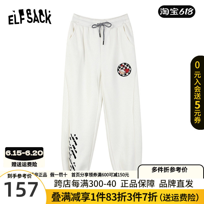 妖精的口袋白色卫裤休闲裤女2023春秋季新款宽松运动长裤子潮