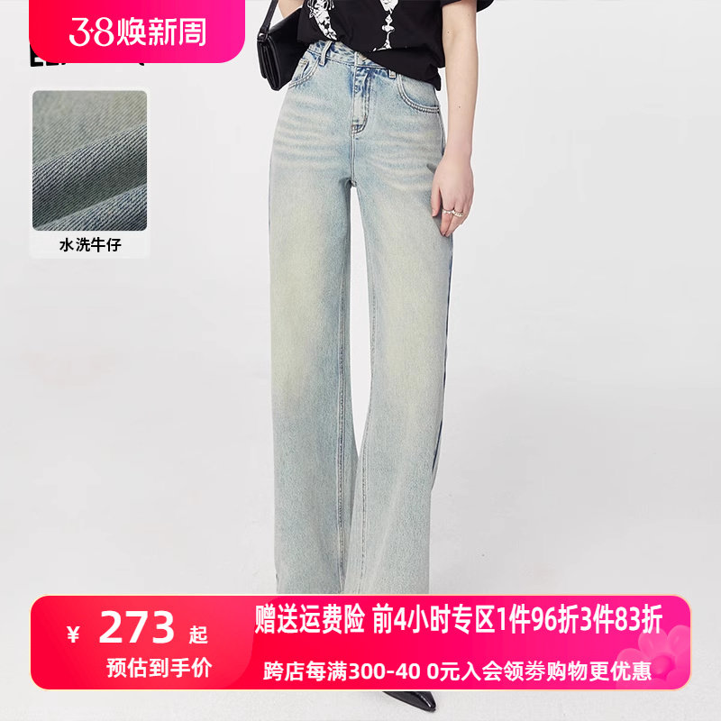 妖精的口袋高腰浅色直筒牛仔裤女2024年早春新款显瘦窄版阔腿裤子