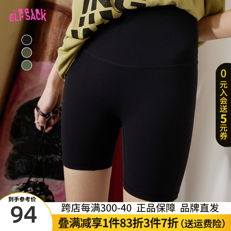 妖精的口袋黑色瑜伽裤短裤女2023春夏季新款外穿弹力紧身打底裤子