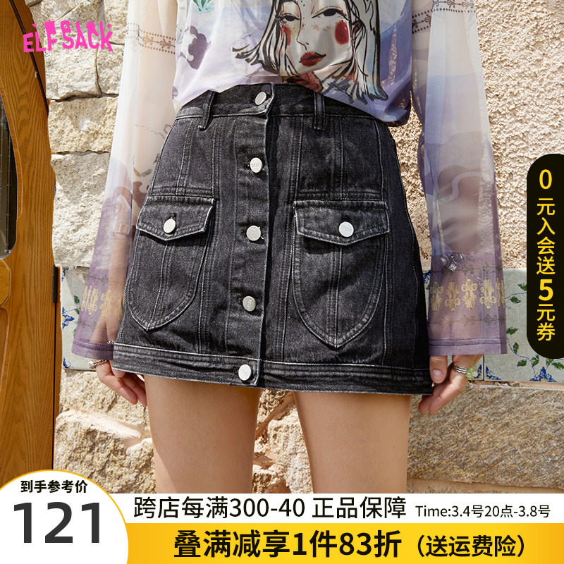 妖精的口袋黑色美式牛仔短裤女2023夏季新款小个子高腰辣妹裙裤子