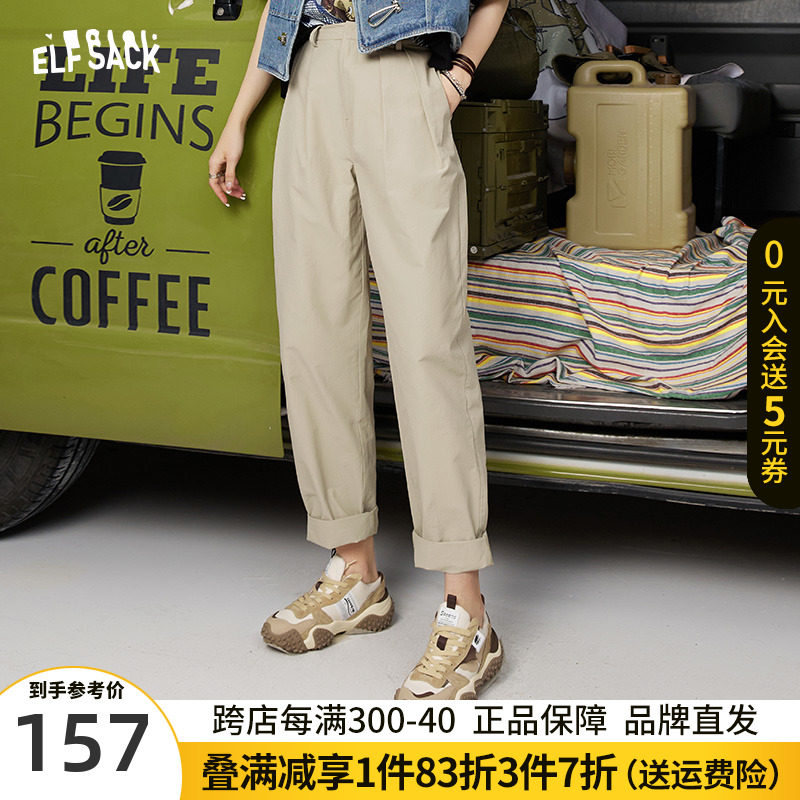 妖精的口袋复古工装萝卜裤女2024春季新款窄版阔腿裤运动休闲裤子