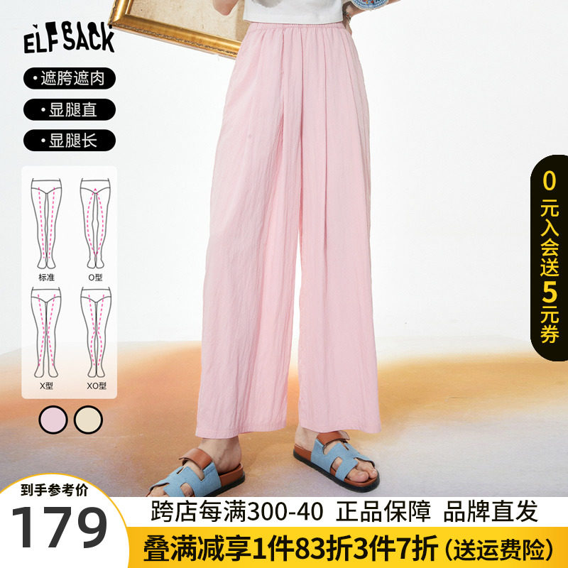 妖精的口袋粉色阔腿休闲裤女2023夏季新款宽松薄款高腰垂感长裤子