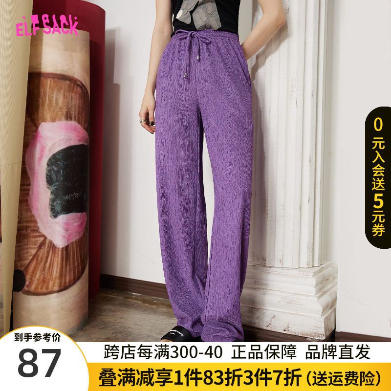 妖精的口袋紫色直筒阔腿裤女2023春秋季新款垂感高腰宽松休闲裤子
