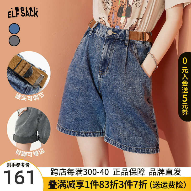 妖精的口袋复古牛仔短裤女2023春夏季新款宽松高腰设计感显瘦裤子
