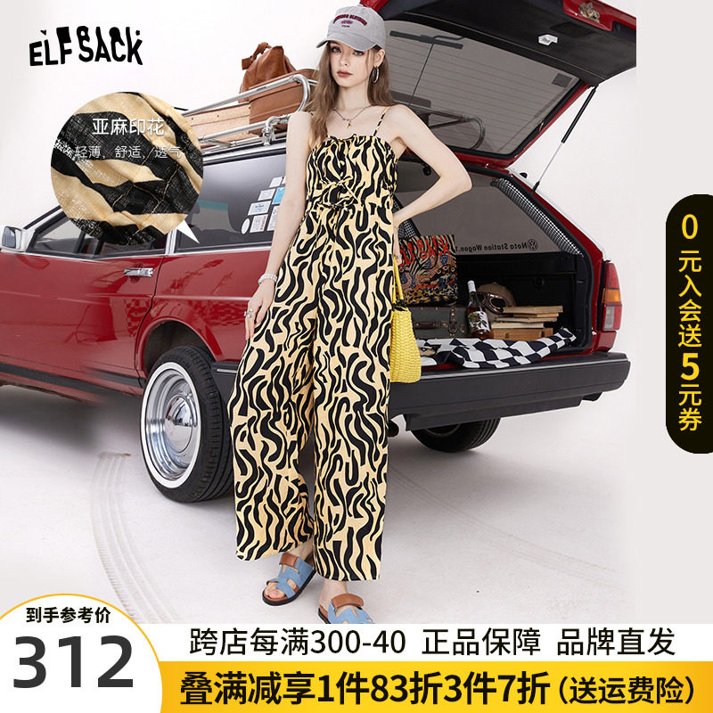 妖精的口袋豹纹吊带连体裤女2023夏季新款连衣裤宽松阔腿休闲裤子