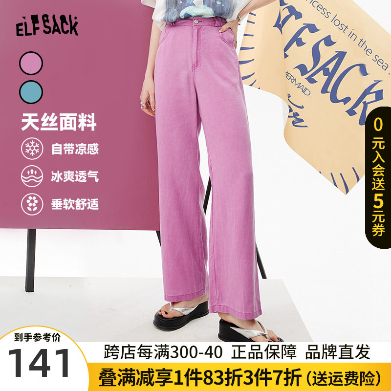 妖精的口袋粉色天丝直筒休闲裤女2023夏新款宽松薄款阔腿凉凉裤子