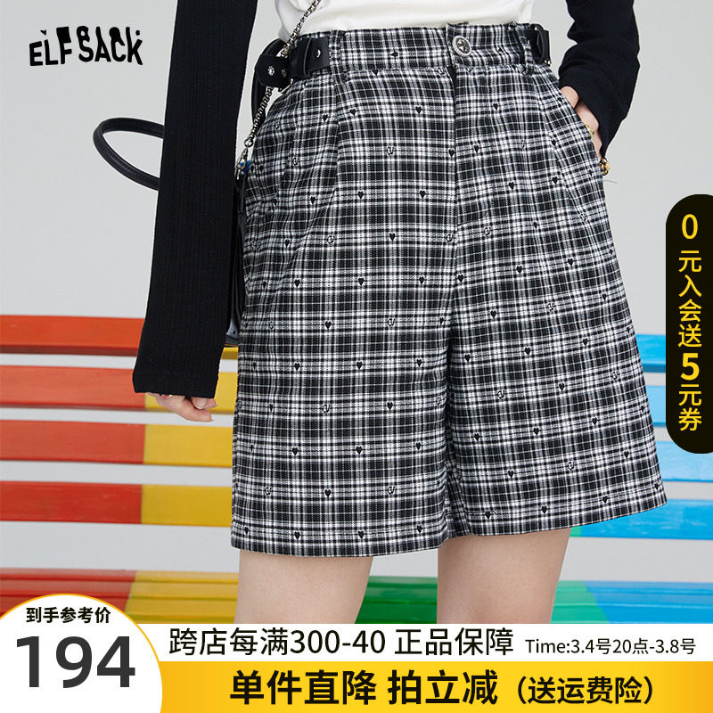 商场同款妖精的口袋高腰短裤女2024春季新款格子宽松显瘦直筒裤子