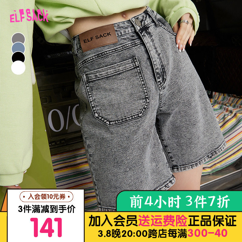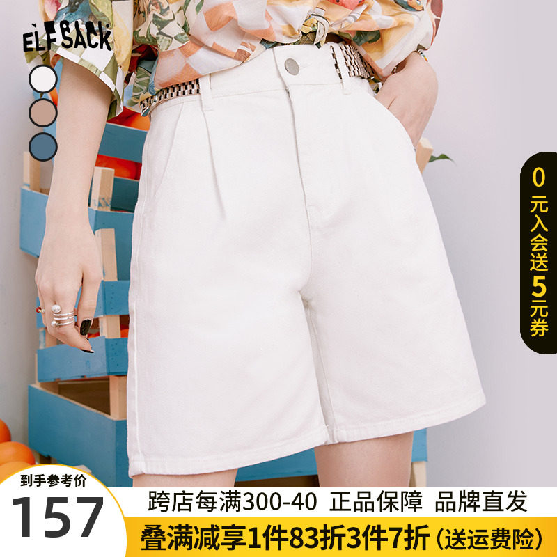 妖精的口袋高腰白色牛仔短裤女2023夏新款小个子宽松显瘦休闲裤子