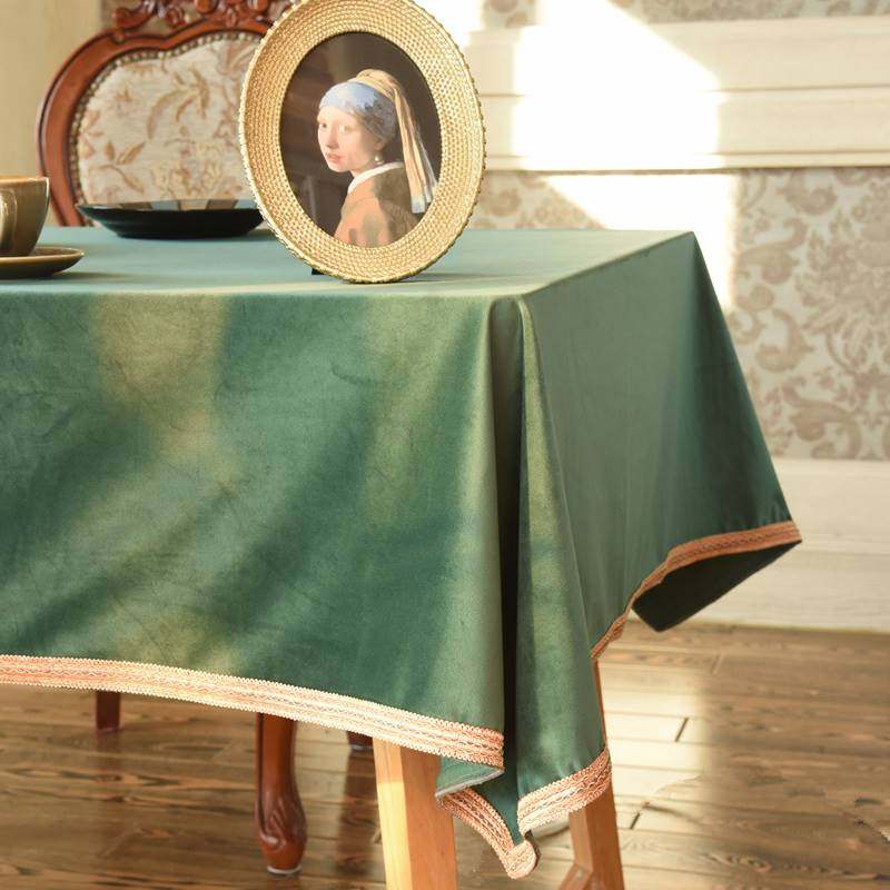 绿色高档美式桌布金丝绒布台布餐布花边复古法式加厚高级感高端