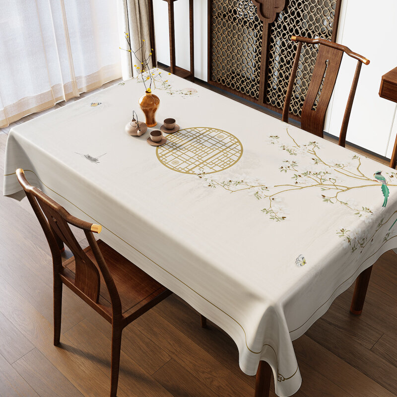 新中式桌布轻奢高级感防水防油免洗餐桌布酒店饭店茶几垫圆桌台布