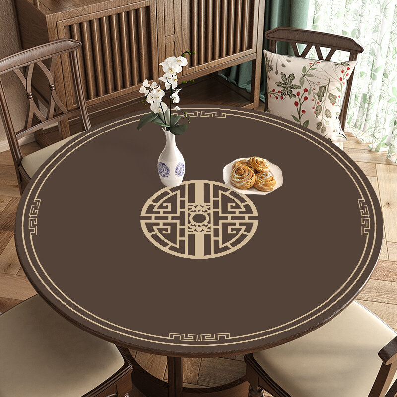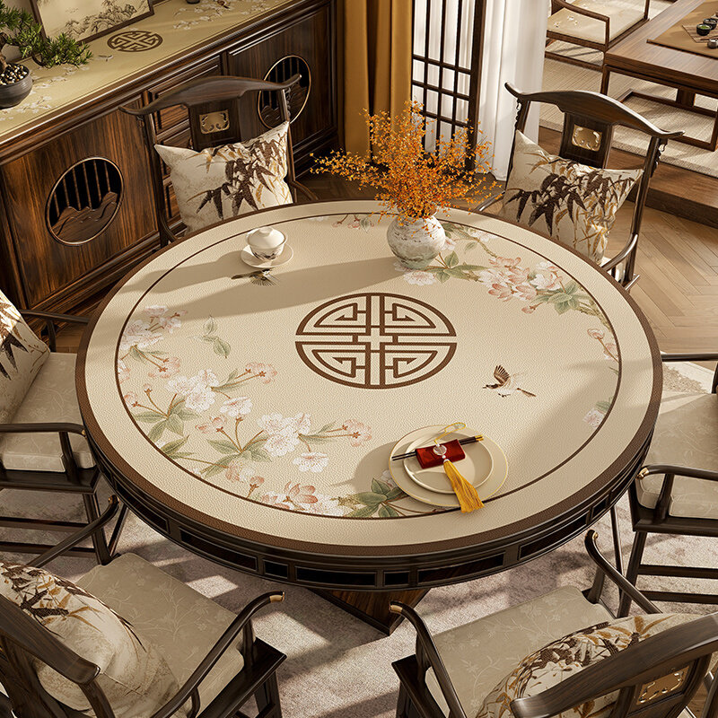新中式圆桌布高级感轻奢转盘餐桌布红木大圆形茶几垫防水防油免洗