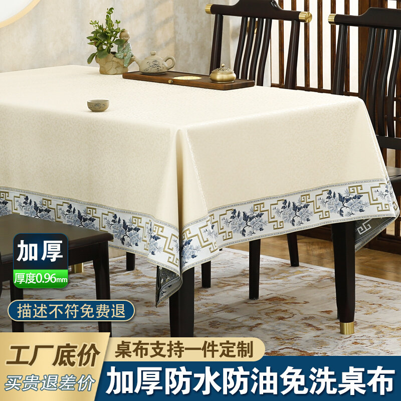 新中式桌布免洗防水防油pvc餐桌垫轻奢高级感长方形防烫茶几台布