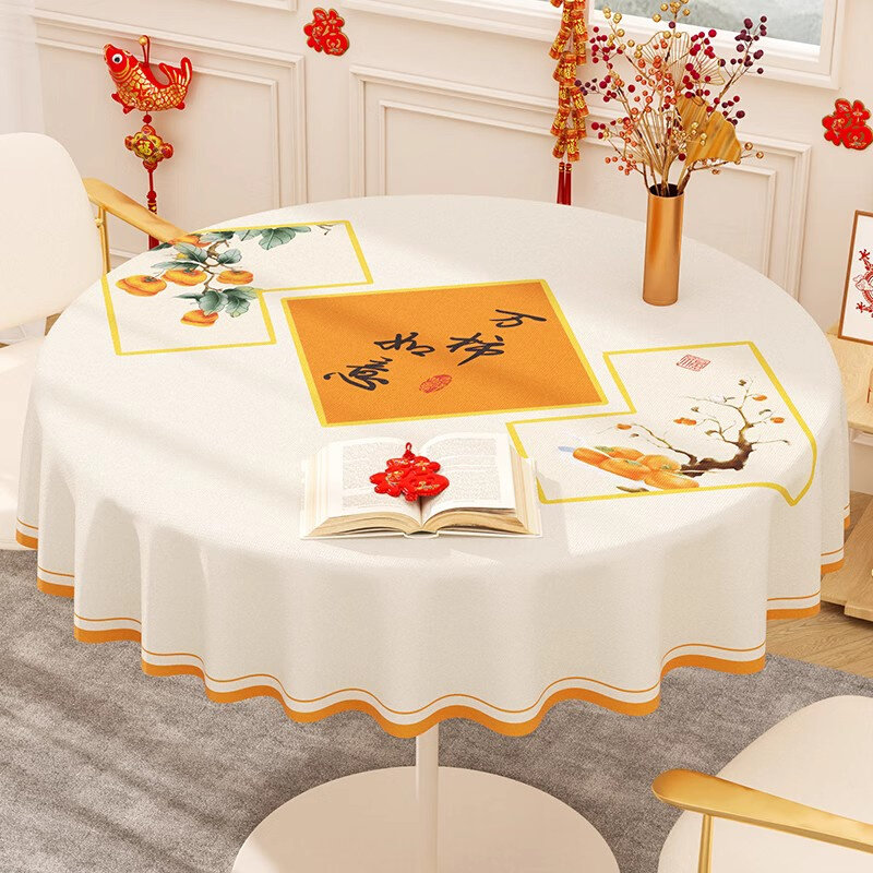 圆桌桌布防水防油免洗防烫喜庆圆形餐台布轻奢高级桌垫茶几保护垫