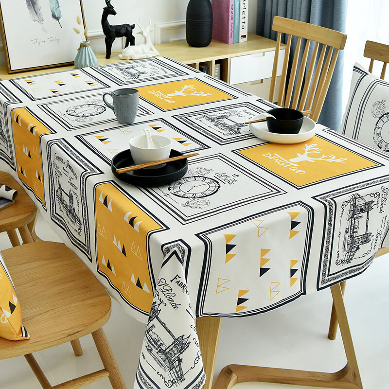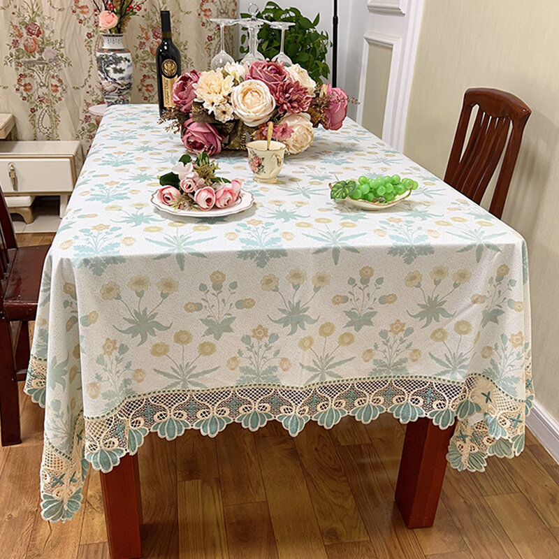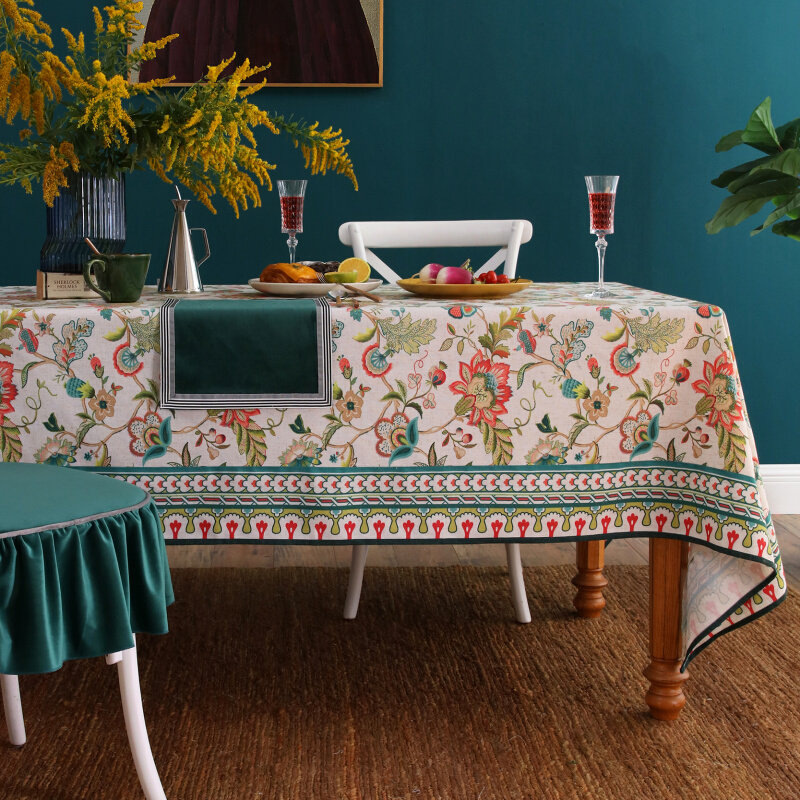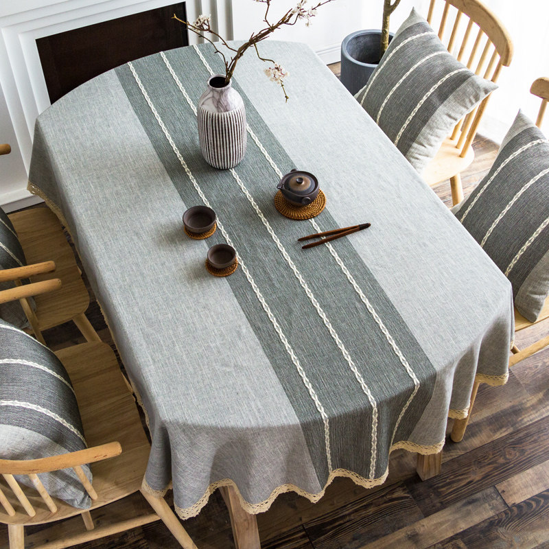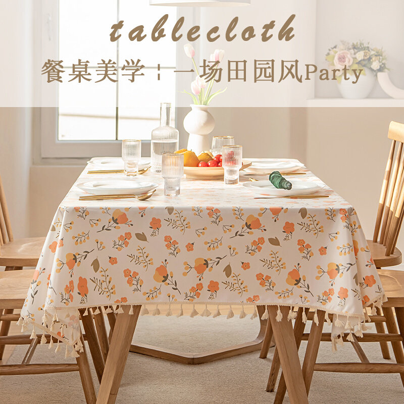 如琪亚麻餐桌布艺防水免洗高级感美式田园家用长方形圆桌茶几台布