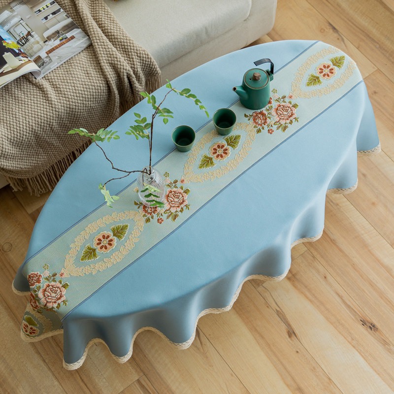 高级感鸭蛋型桌垫ins风防尘台布定制尺寸椭圆形餐桌茶几桌布布艺