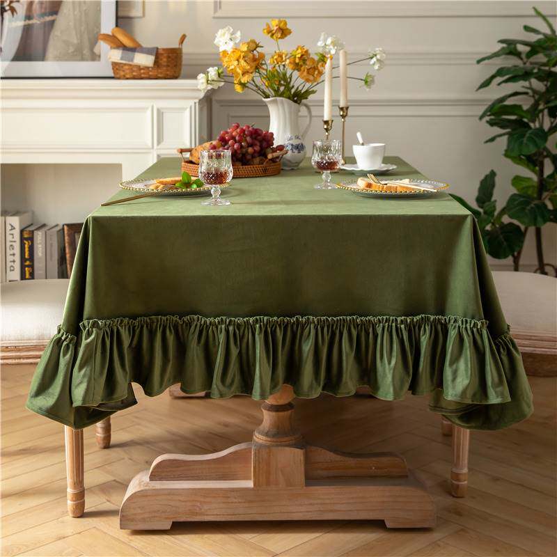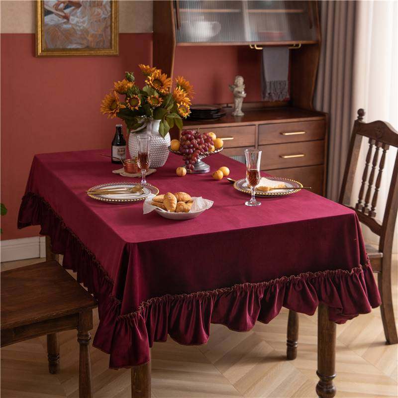 美式复古丝绒荷叶边高级感法式桌布餐桌布方桌圆桌盖布书桌化妆台