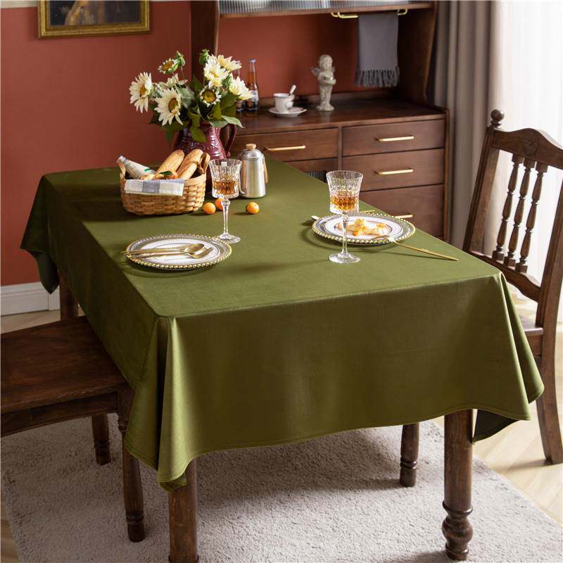 轻奢高级感复古绒布餐桌布橄榄绿色丝绒家用长方形圆桌布茶几台布