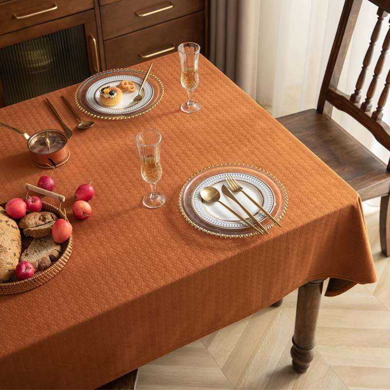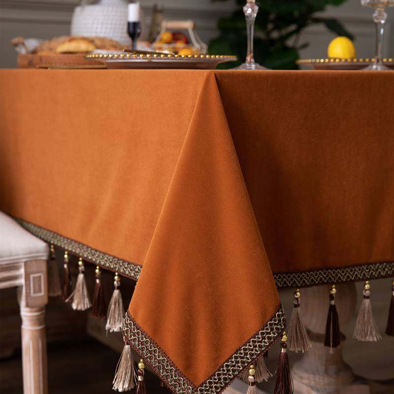 高端美食桌布高级感欧式绒布台布大气奢华复古橘黄色定制餐厅饭店