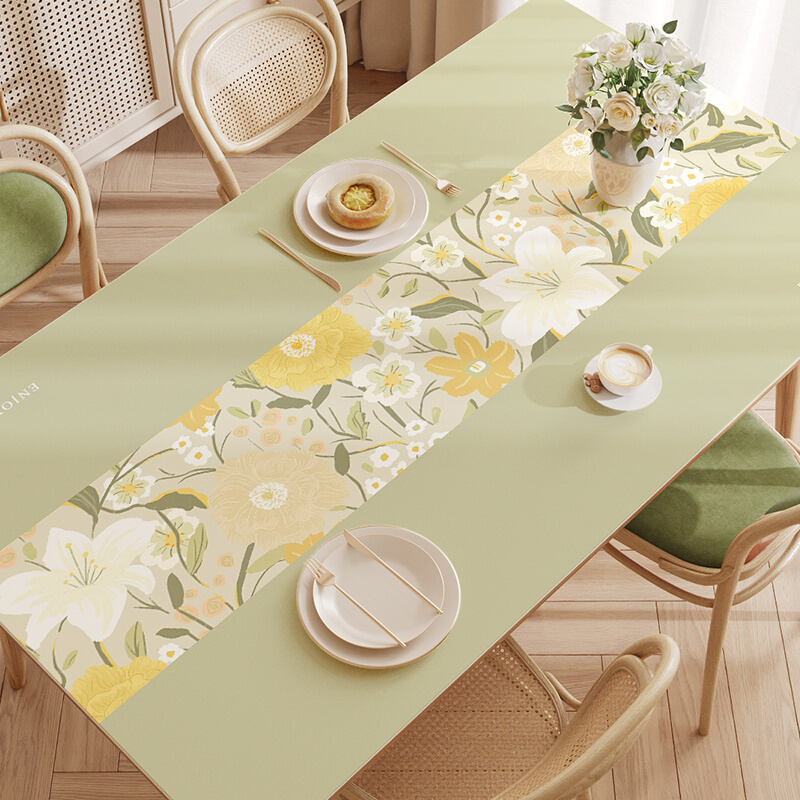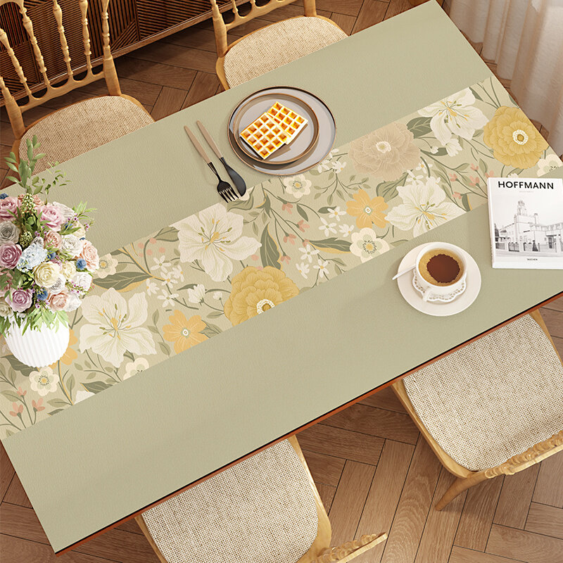侘寂风餐桌垫防水防油皮革桌布免洗硅胶隔热垫轻奢高级感茶几台布