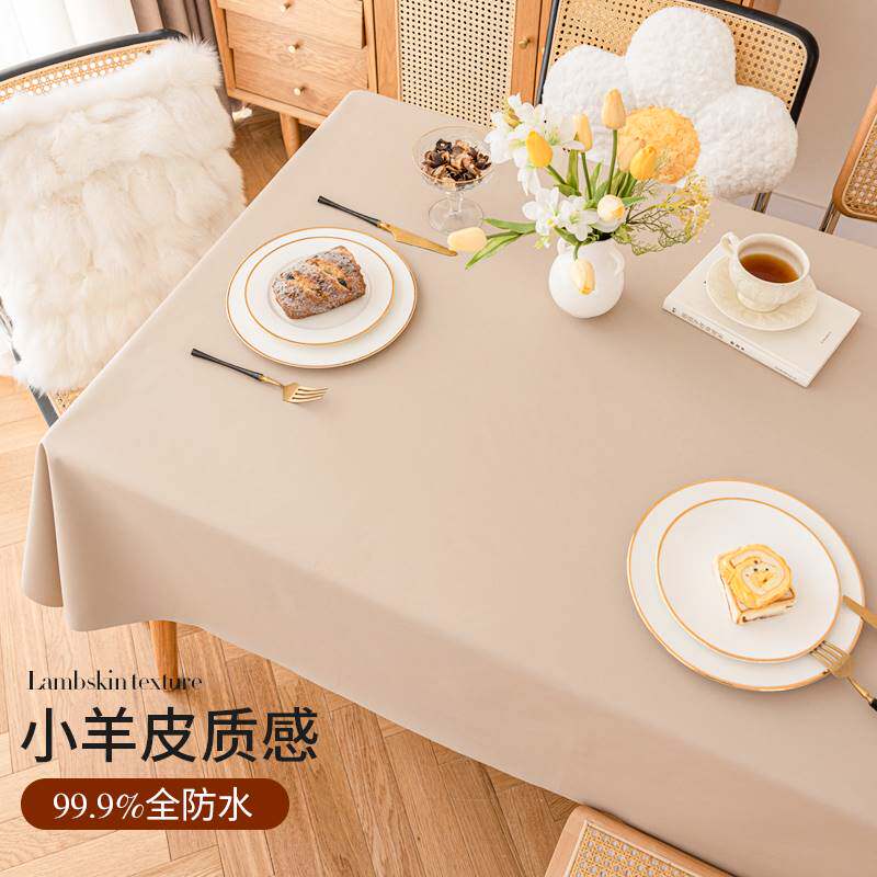 网红小羊皮氛围感纯色桌布免洗防油防水防滑轻奢高级感茶几布餐桌