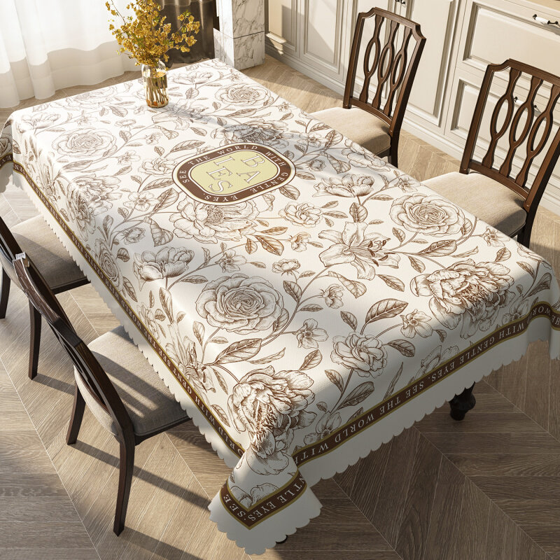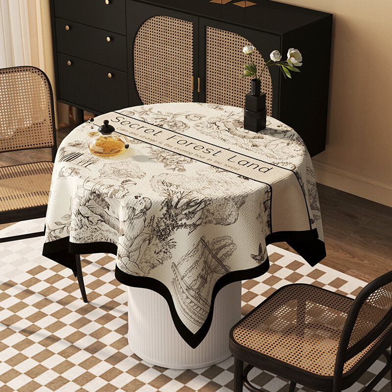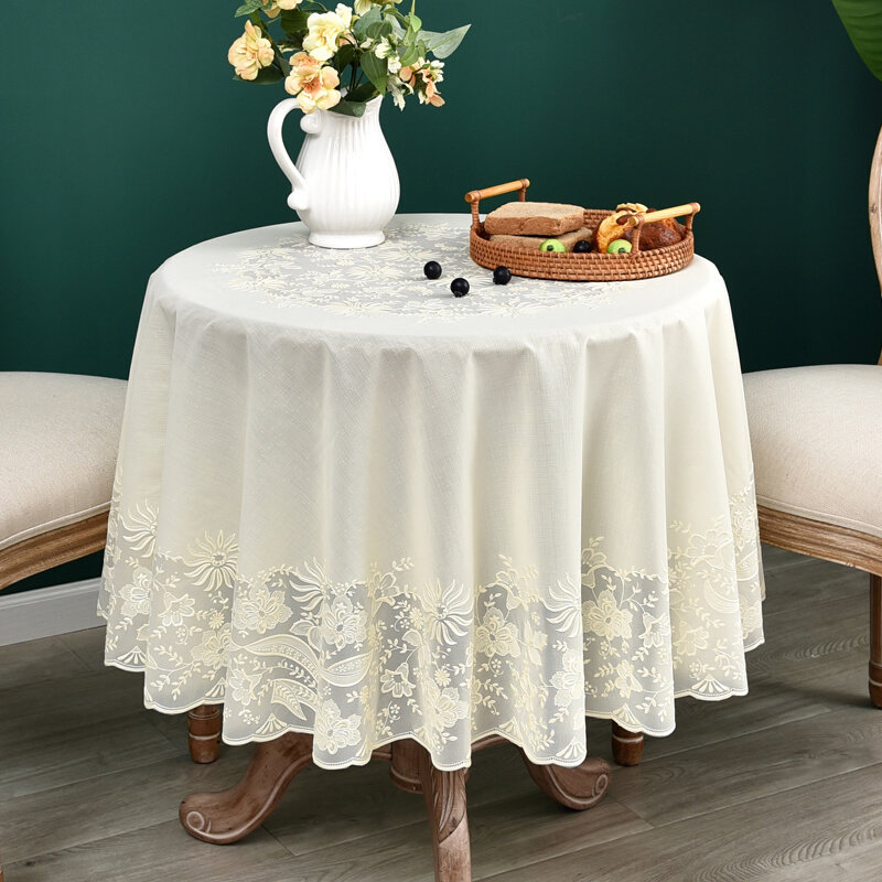 美式餐桌布艺高级感圆桌布盖布巾防水家用轻奢圆形茶几布餐桌台布