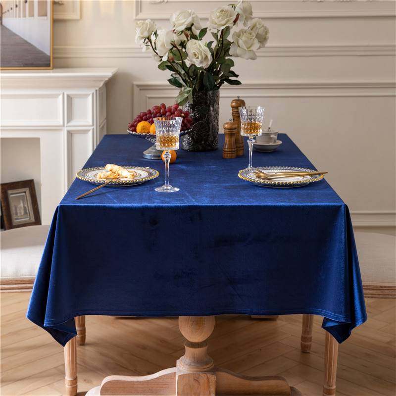 克莱因蓝丝绒桌布家用餐桌长方形圆桌复古轻奢高级感茶几台布定制