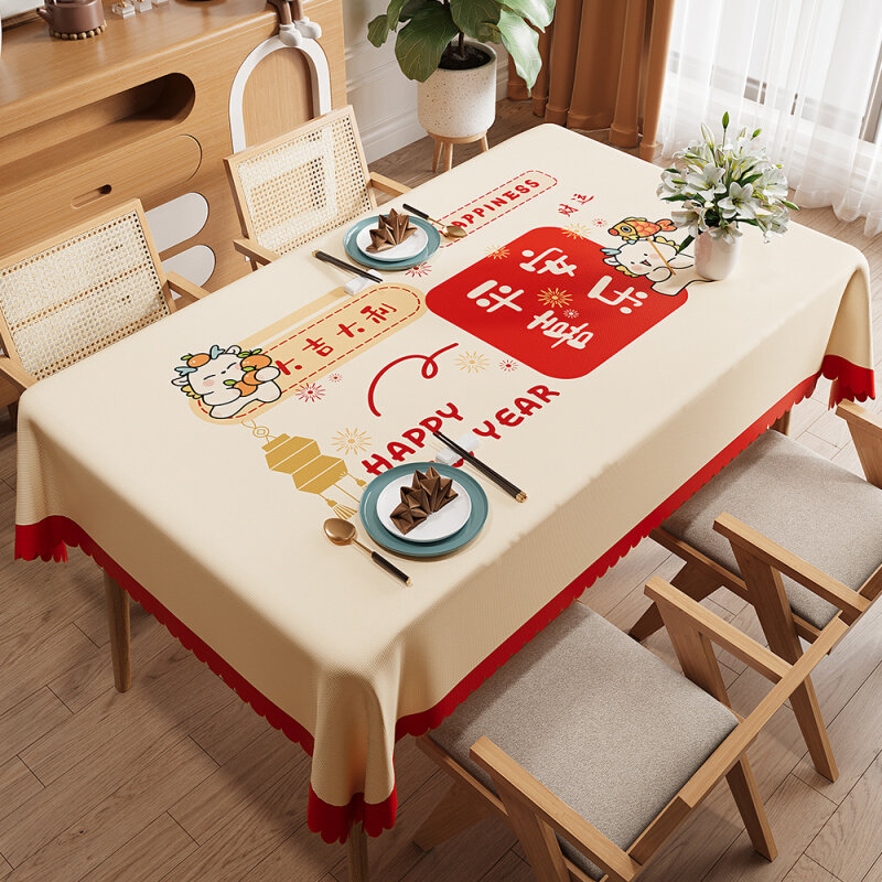 2024新年餐桌布免洗防油防水防烫茶几垫轻奢高级感长方形台布塑料