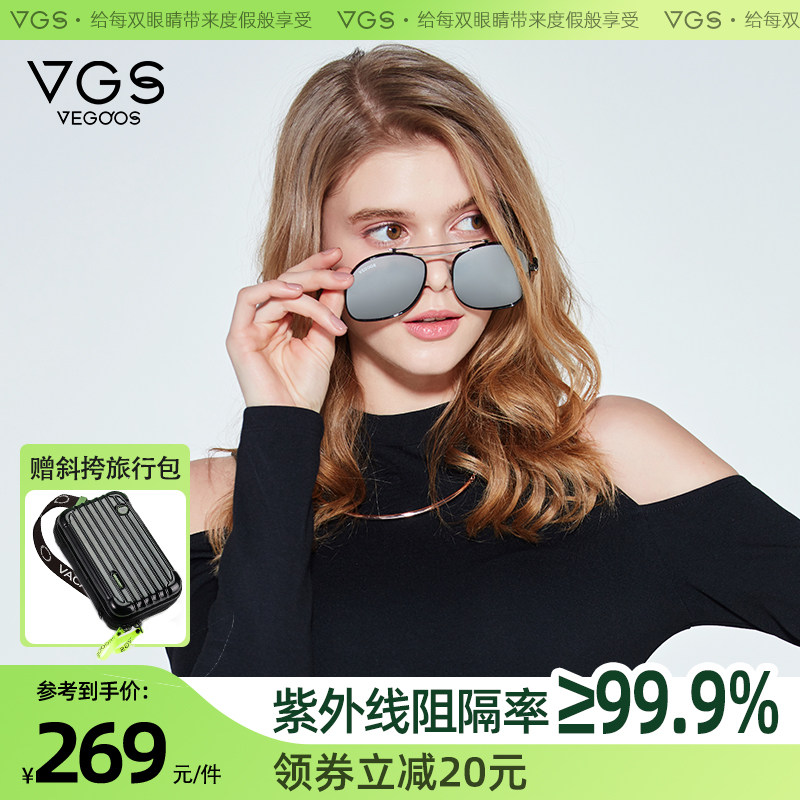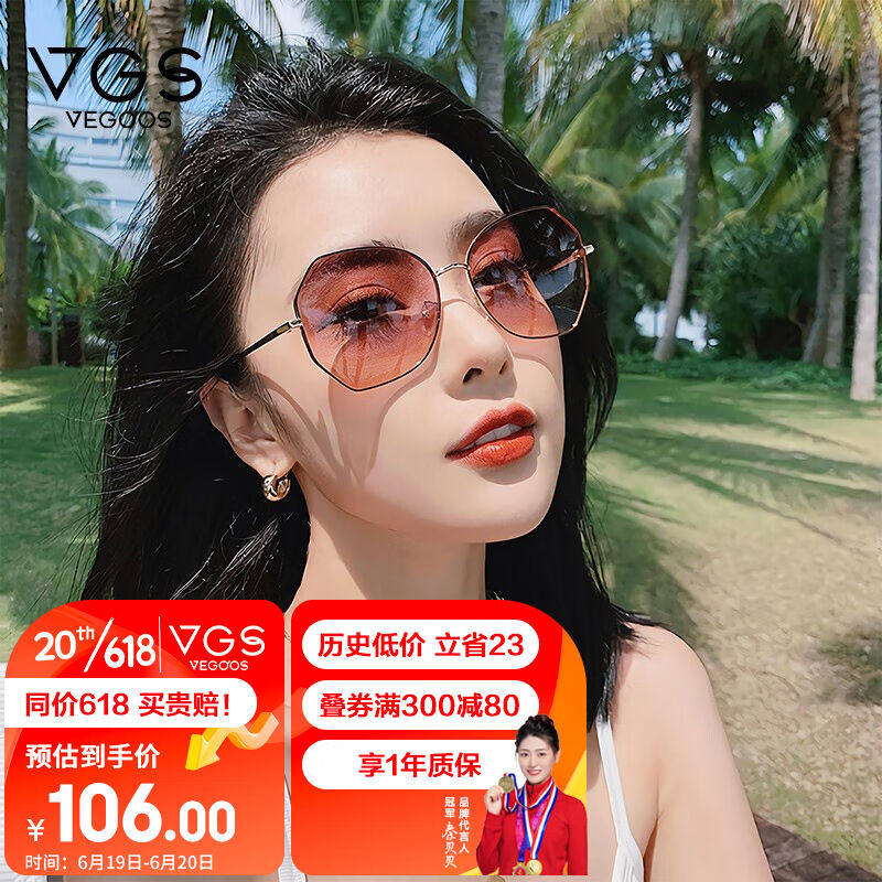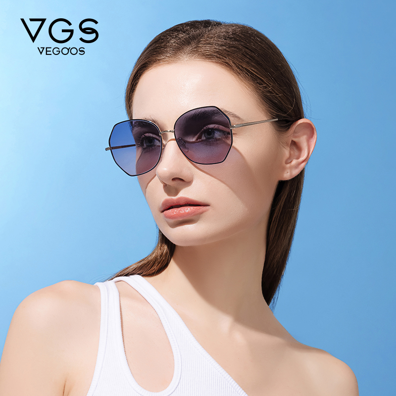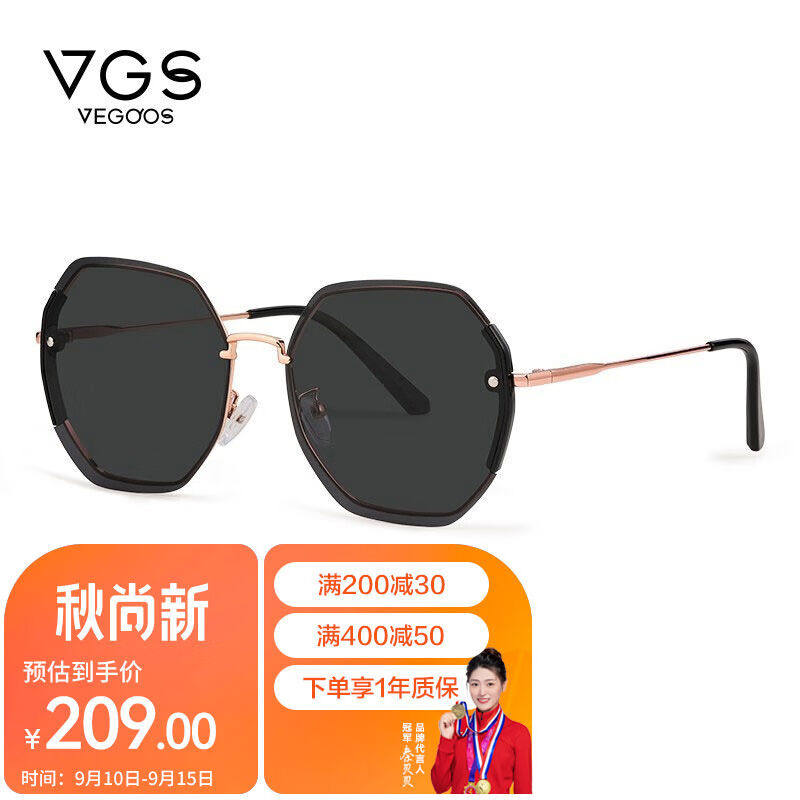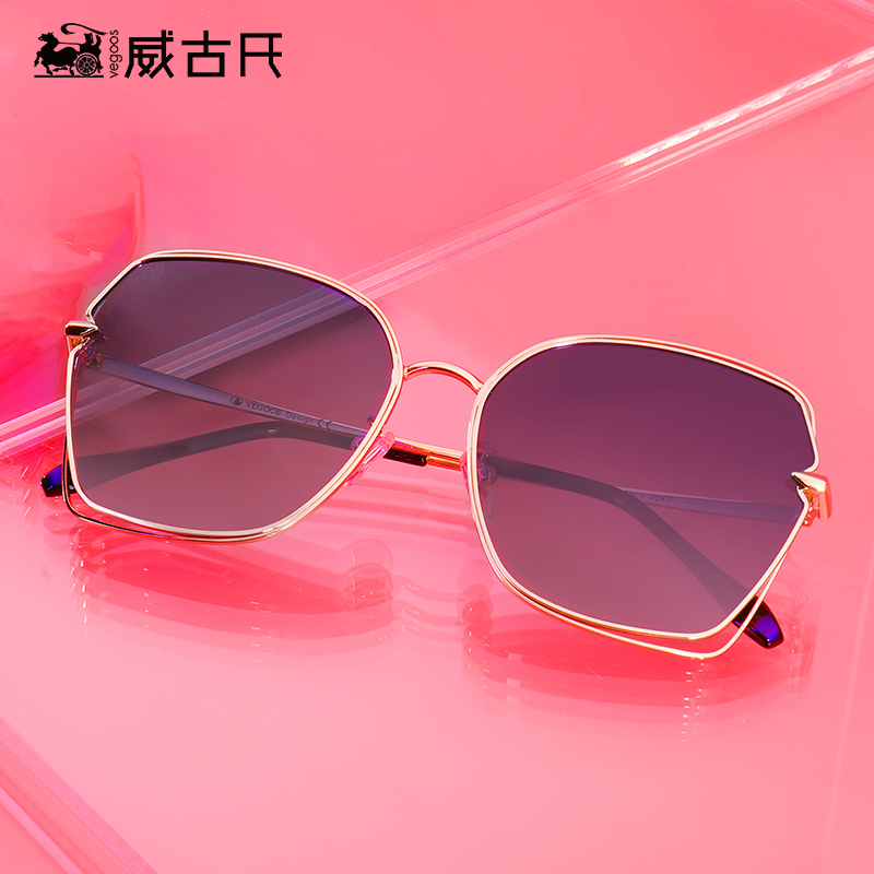 威古氏VEGOOS女士偏光太阳镜多边形大框驾驶墨镜潮VGS216176金框