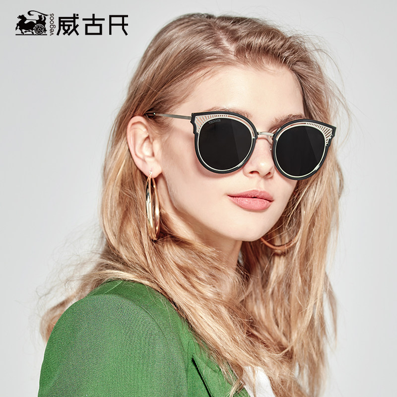 威古氏新款时尚墨镜女猫眼大框韩版圆脸防紫外线户外偏光太阳镜女