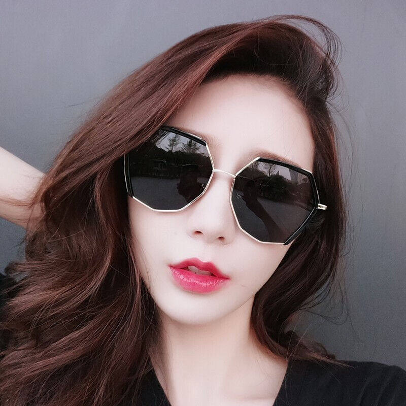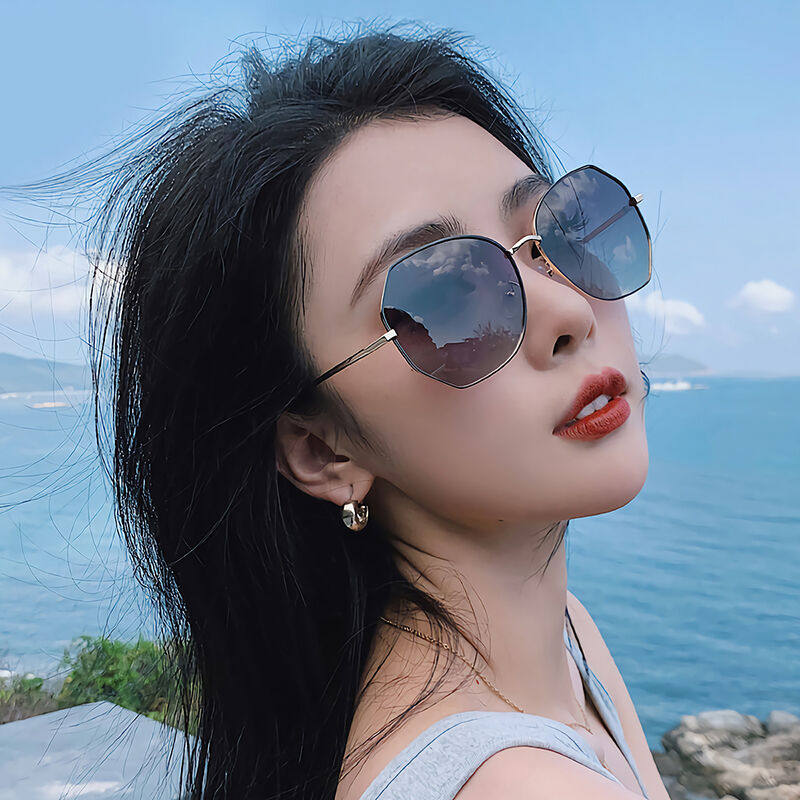 威古氏墨镜女金属多边防紫外线大脸街拍显瘦偏光腮红太阳眼镜渐变