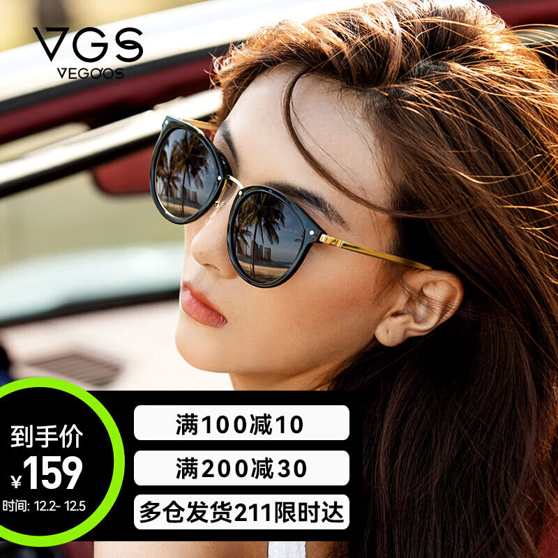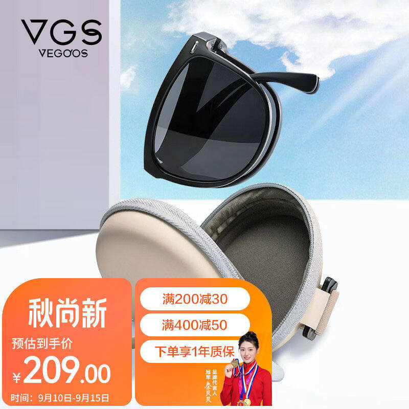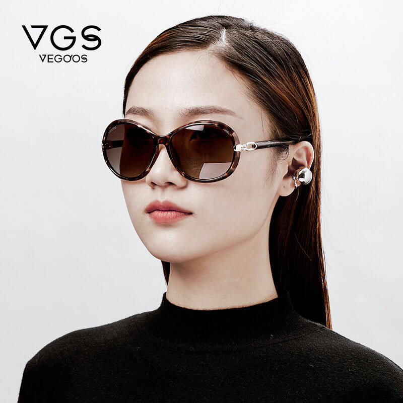 威古氏(VEGOOS)新款女士太阳镜偏光大框眼镜街拍圆脸遮阳镜墨镜