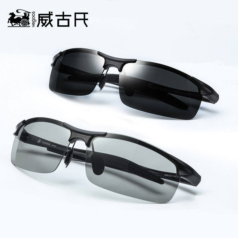 威古氏新款男士太阳镜潮变色开车驾驶眼镜偏光蛤蟆镜飞行员墨镜