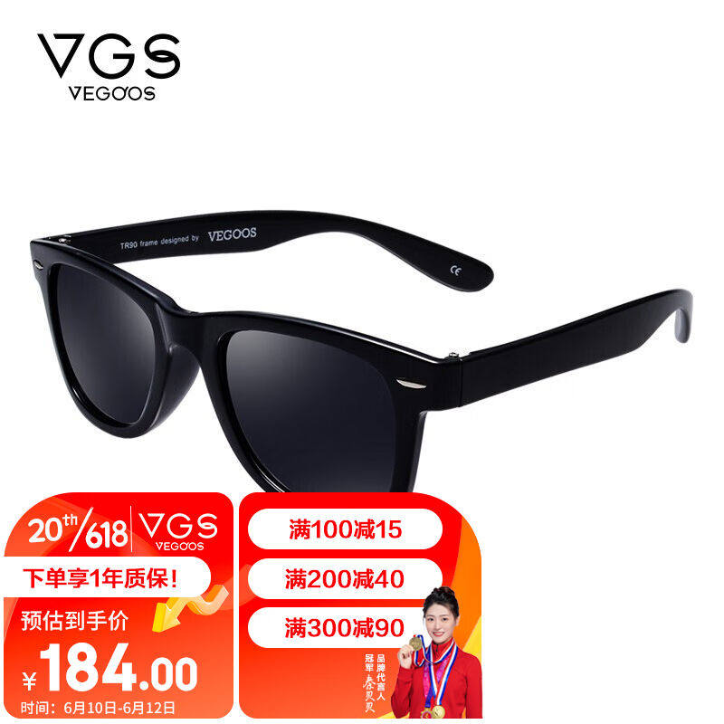 威古氏VEGOOS偏光太阳镜男女款潮流驾驶镜墨镜眼镜6106亮黑框灰片