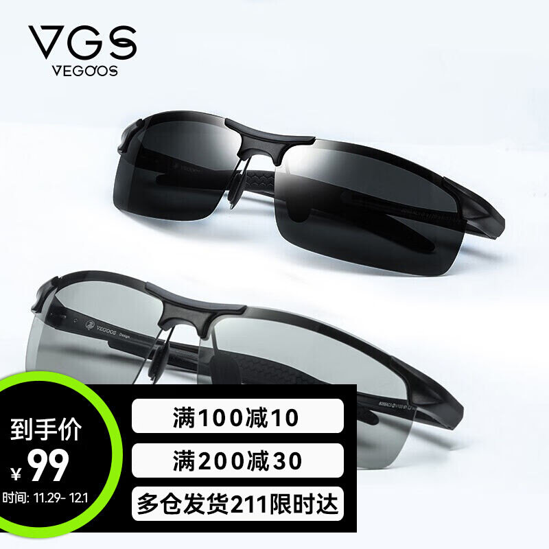 威古氏(VEGOOS)感光变色偏光太阳镜型男开车专用墨镜户外骑行钓