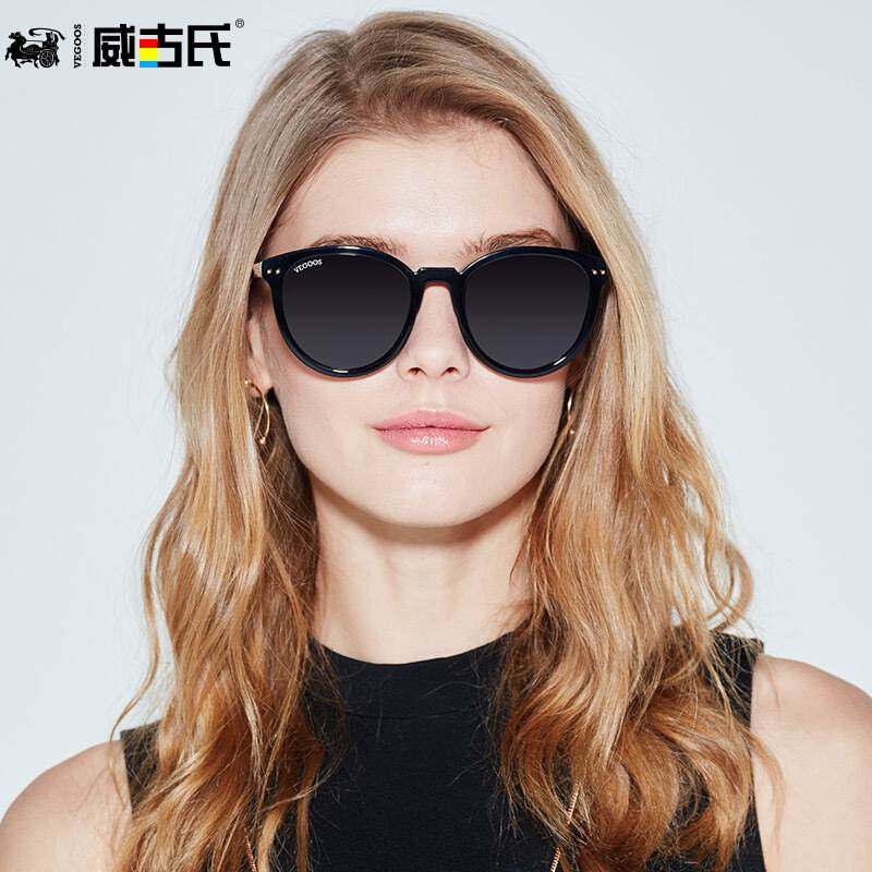 威古氏VEGOOS偏光太阳镜圆框复古潮人墨镜女款修脸型眼镜 9099 黑