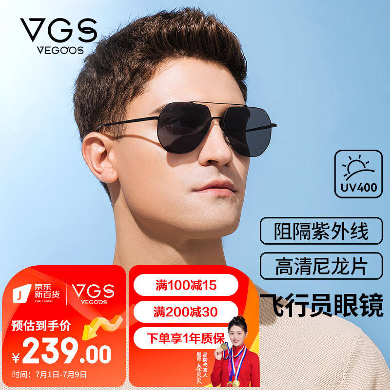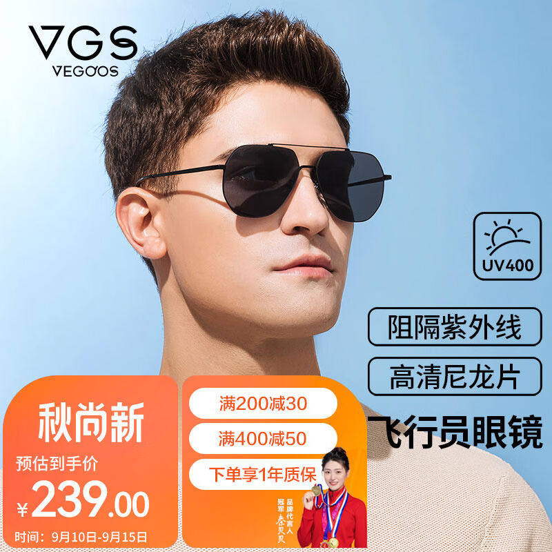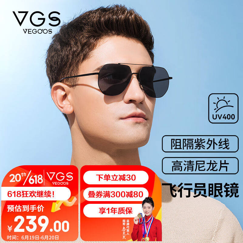 威古氏VEGOOS尼龙太阳镜男款高清驾驶员墨镜潮流眼镜女3181黑框灰