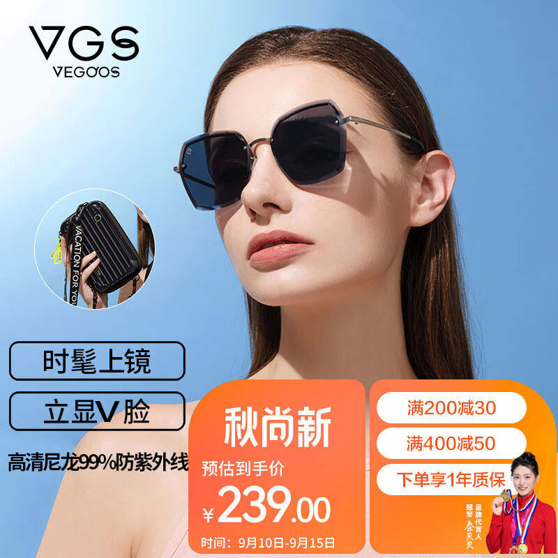 威古氏(VEGOOS)新款女士太阳镜偏光大框眼镜街拍圆脸遮阳镜墨镜