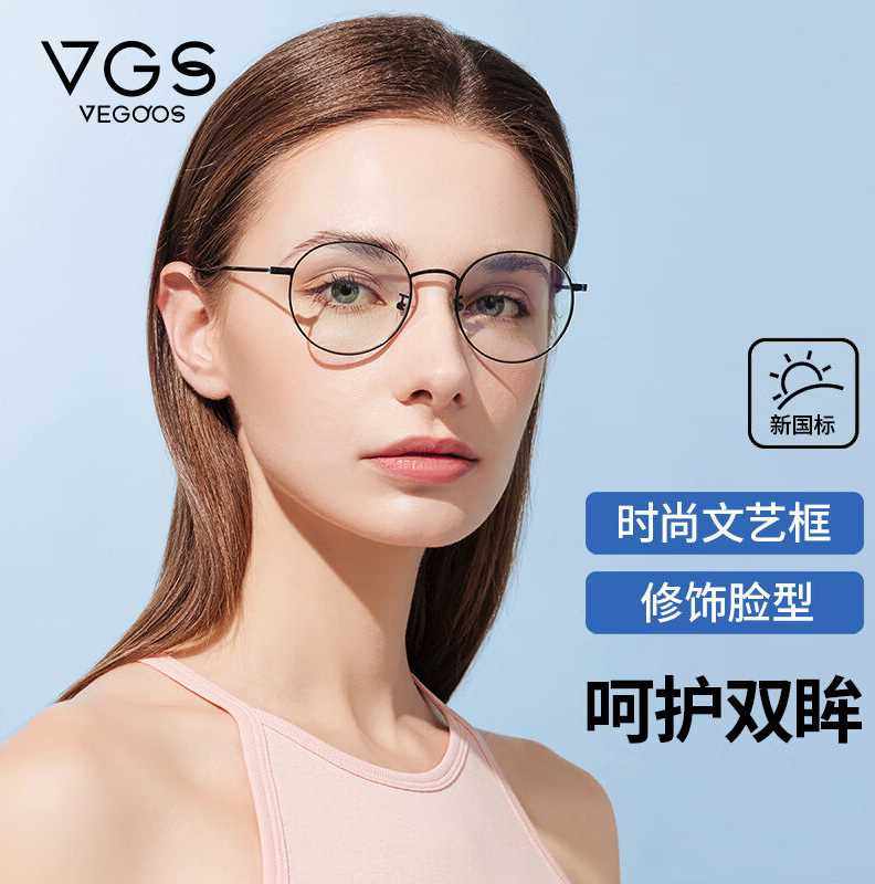 威古氏(VEGOOS)防蓝光辐射眼镜女超轻复古圆框电脑护目镜近视眼