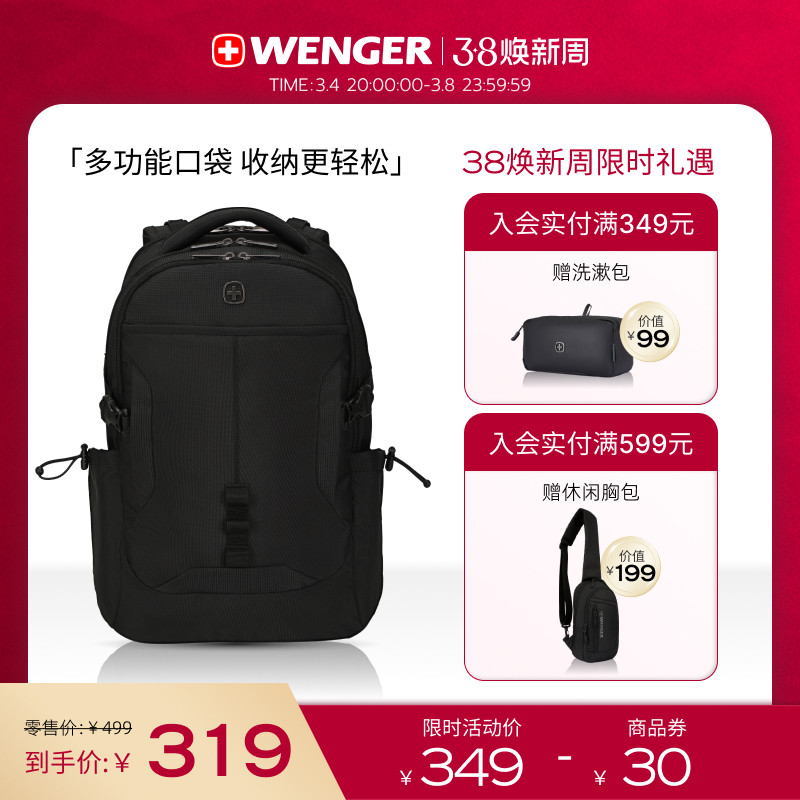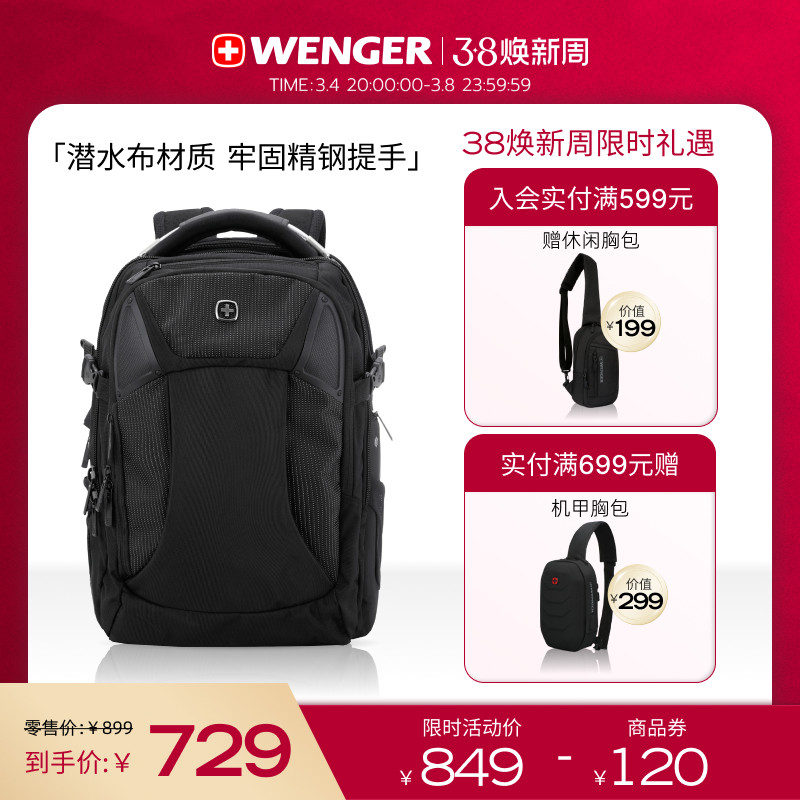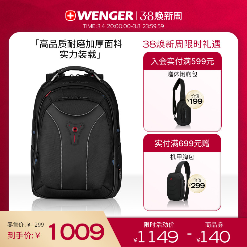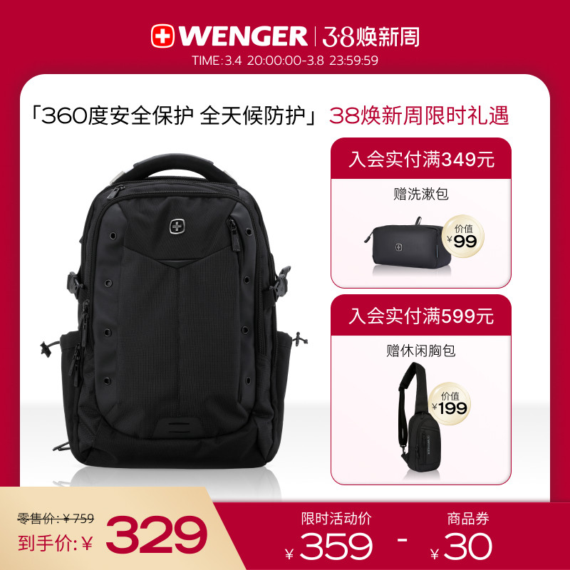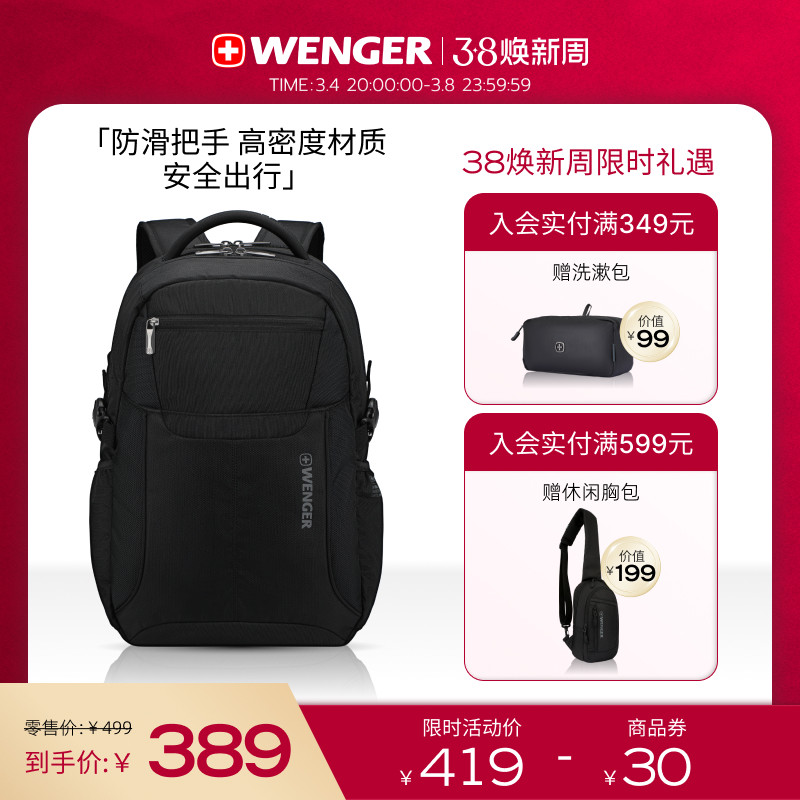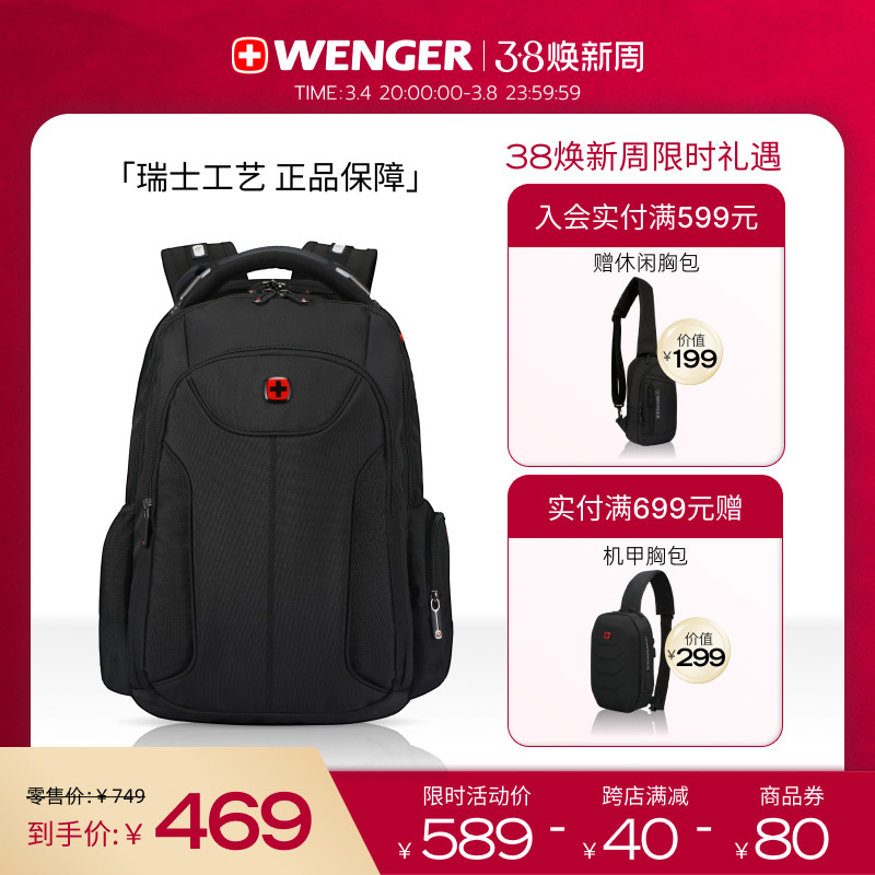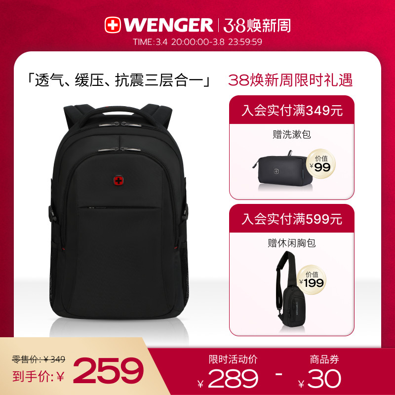 Wenger/威戈瑞士军刀简约书包双肩包男商务电脑背包减压大容量