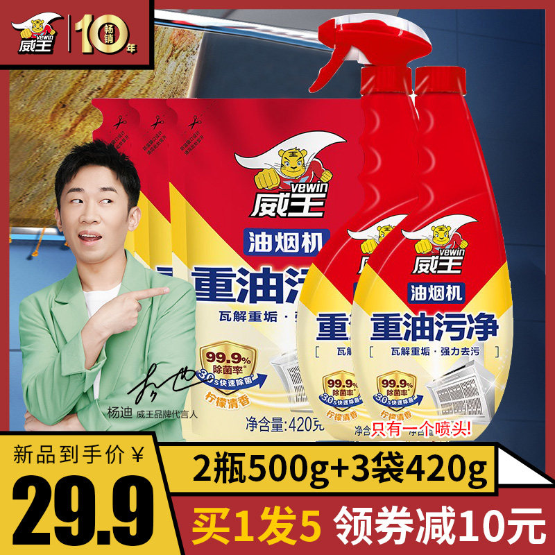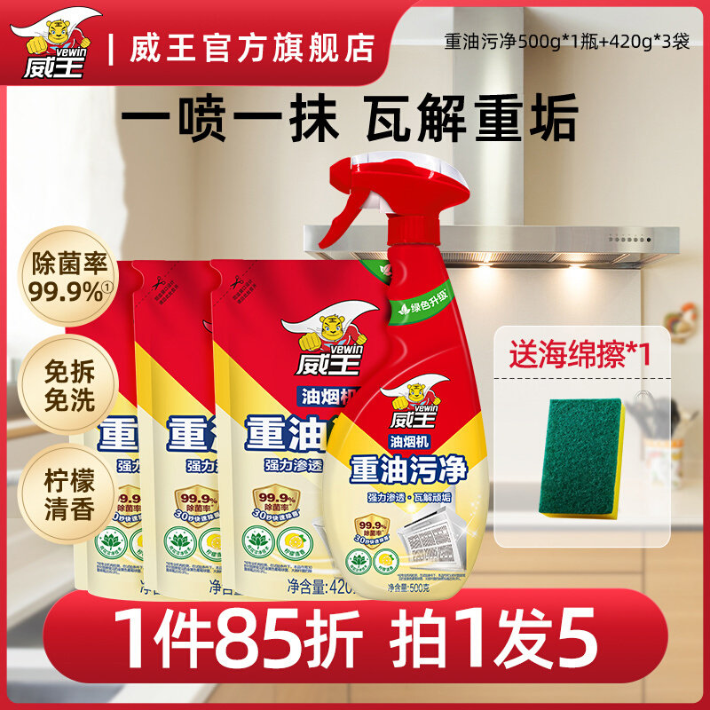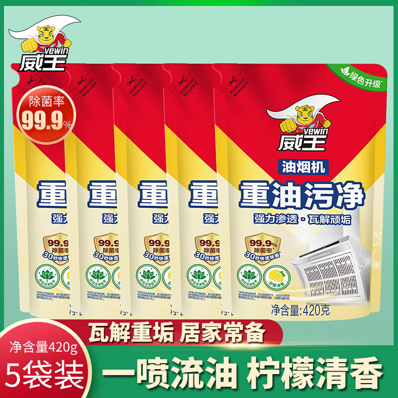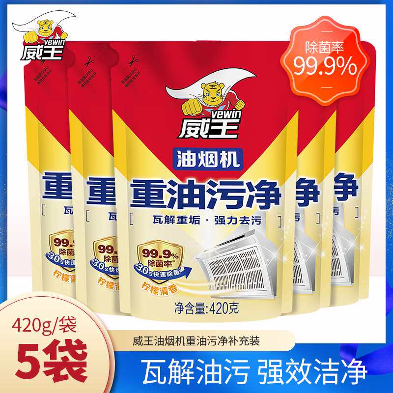 威王油烟机重油污净420g*5袋特惠补充装除菌去油污家用厨房清洁剂