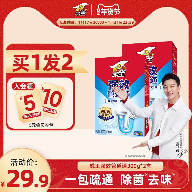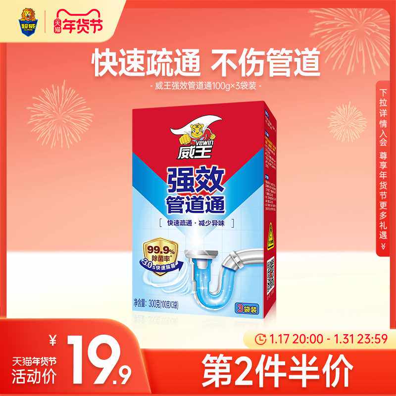 威王管道疏通剂粉300g2盒装强力溶解疏通厨房厕所马桶下水道堵塞