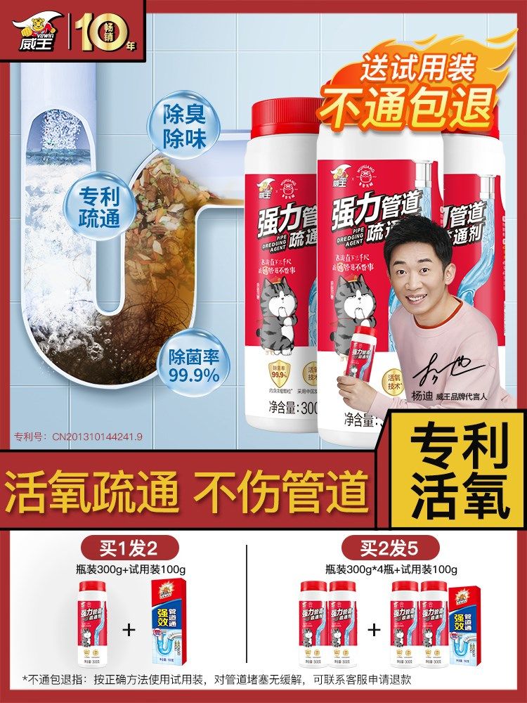 威王下水道疏通剂强力疏通溶解厨房管道油污厕所马桶堵塞除臭神器