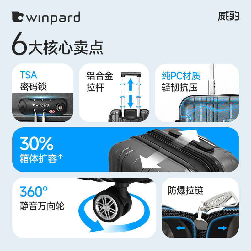 WINPARD威豹拉杆箱pc箱男硬箱行李箱托运登机箱女密码箱旅行箱深