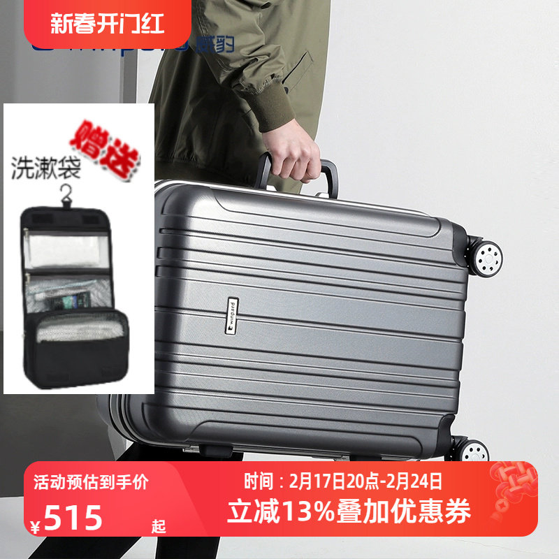 威豹行李箱学生20寸旅行箱静音万向轮大容量铝框拉杆箱商场同款